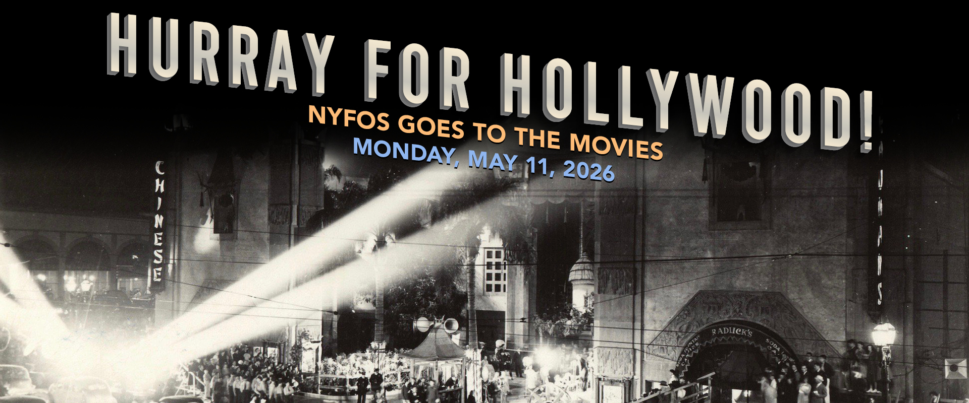 Gala Co-Chairs Jamie Bernstein, Joseph Kaiser & Jeanne Ireland, and Malcolm & Victoria Blier invite you to join us on Monday, May 11, 2026 for Hurray for Hollywood!, NYFOS’s annual Spring Gala. The evening, featuring cocktails, dinner, and performances at the intimate and elegant Racquet & Tennis Club on Park Avenue, is always a highlight of NYFOS’s season, and our favorite way to celebrate with patrons—like you— who make all our work possible.